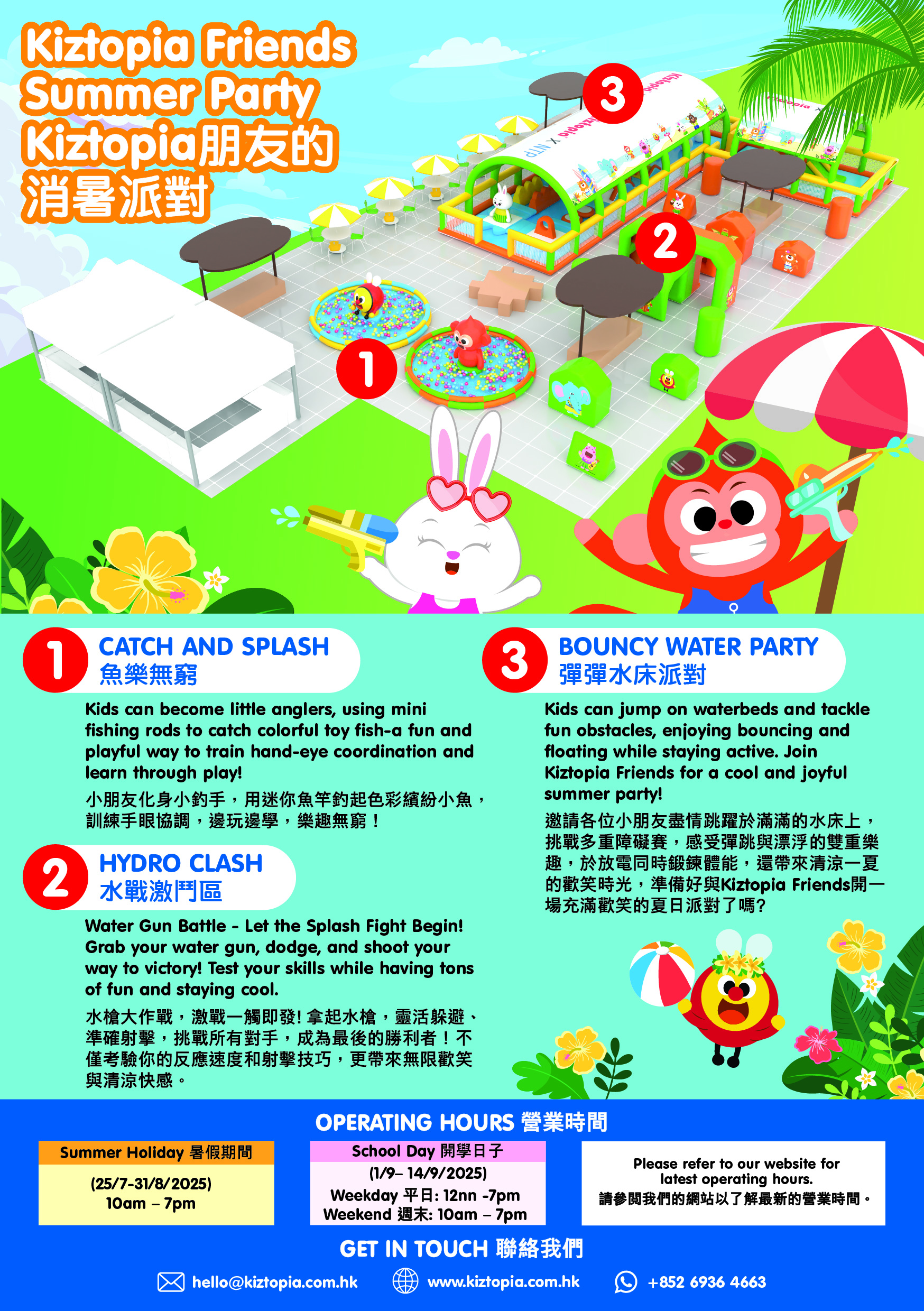This summer, Kiztopia Friends bring you the ultimate Summer Bounce Party! Spanning over 5,000 sq.ft., it's our first -ever inflatable playground with water elements! Bounce and float on our mega waterbed and strike pose at this summer's coolest "lightweight kungfu" photo spot. With three zones for both wet and dry fun, join us and make unforgettable summer memories!